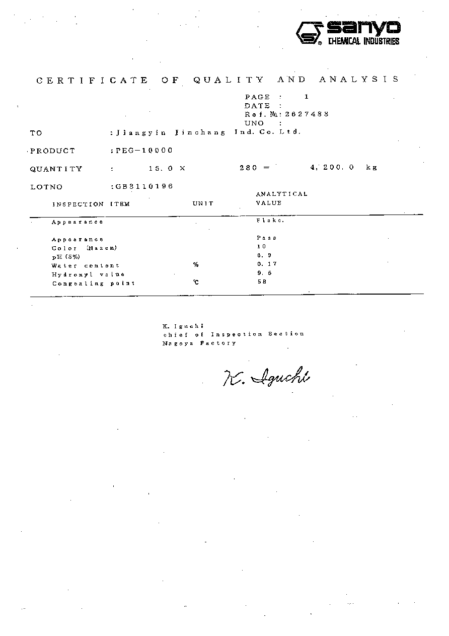 附日本三洋PEG10000COA: