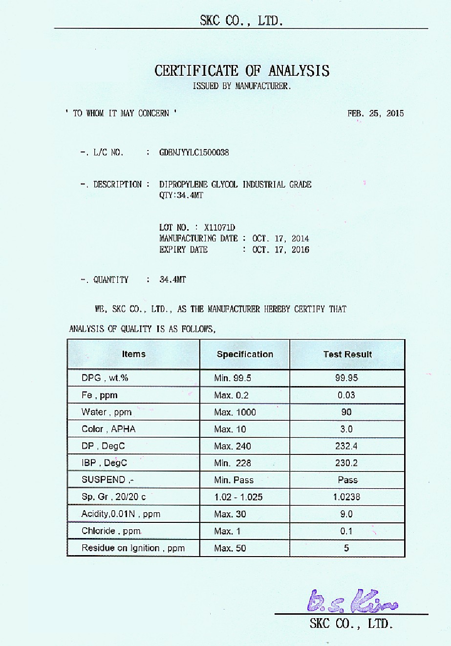英文名称:Dipropylene glycol 产 地:韩国SK、美国陶氏、新加坡壳牌