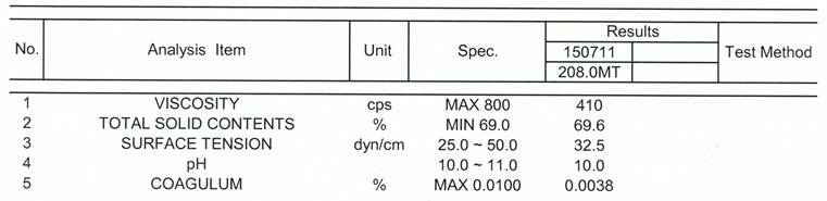 用途:韩国锦湖KSL341丁苯乳胶具有颗粒直径较大, 发泡稳定的特性, 适合用于高档化妆品乳胶海绵发泡, 鞋材发泡, 沥青改性等用途.