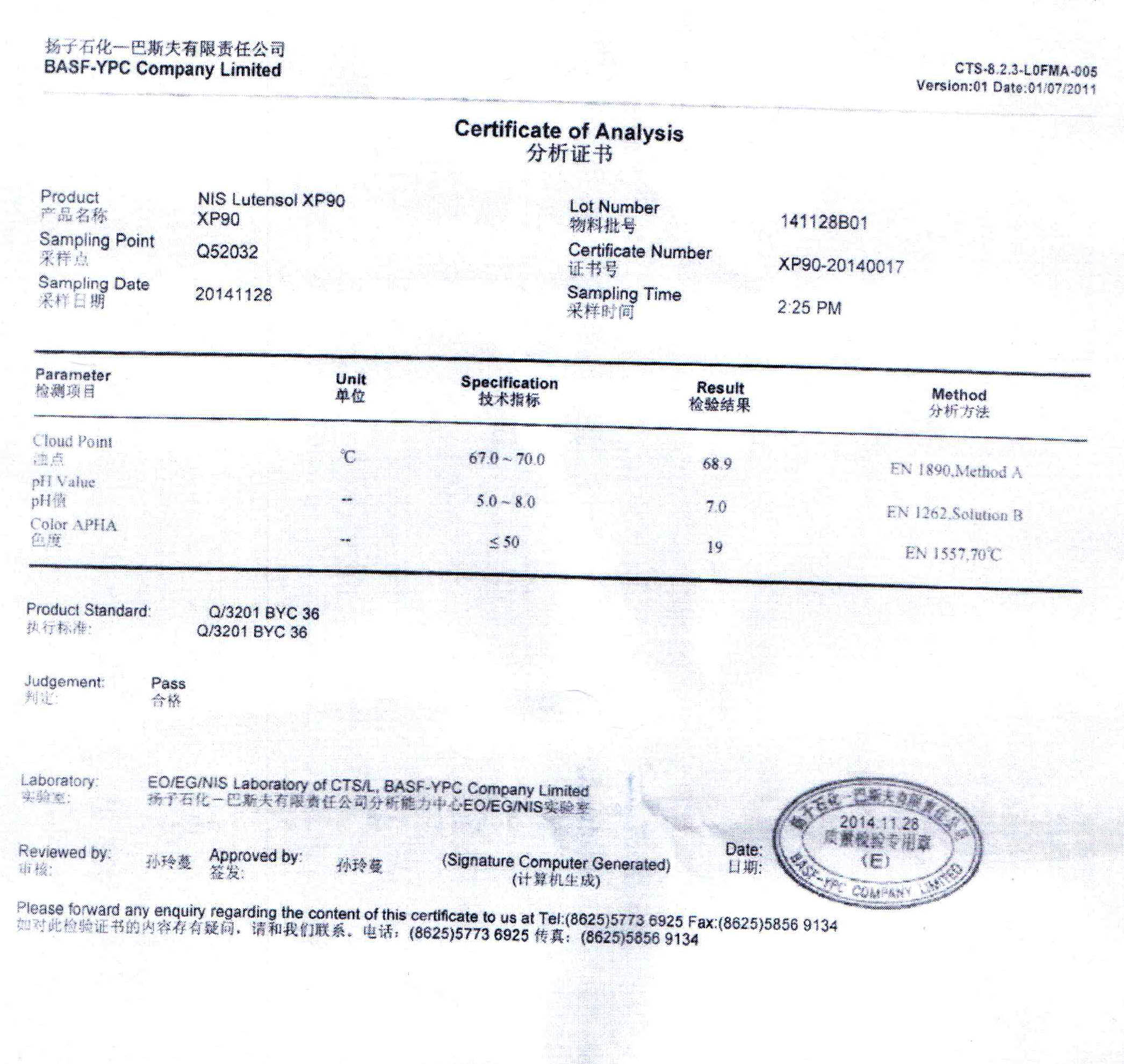 品牌:扬子石化-巴斯夫 级别:工业级
