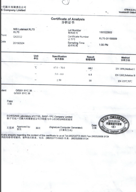 商品名称:非离子表面活性剂XL-70    包装:每桶200公斤