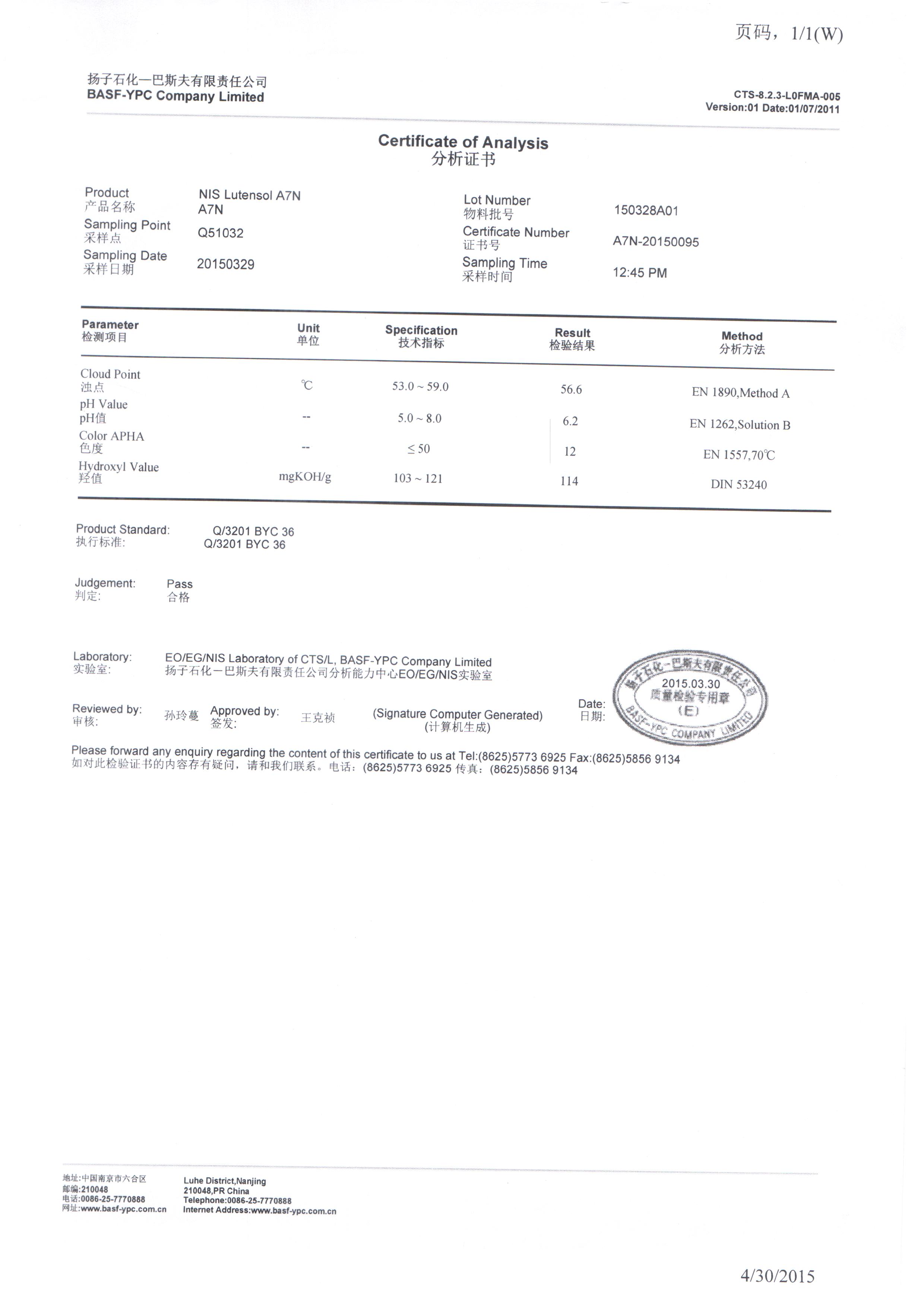 · 规格/纯度:99% 品牌:扬子石化-巴斯夫