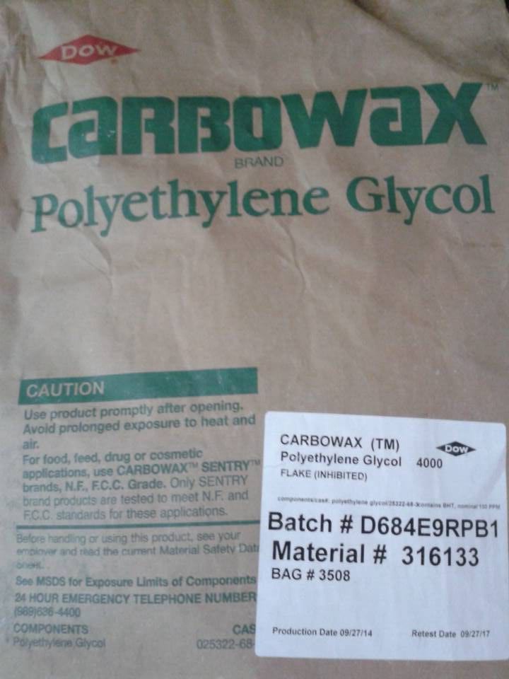 中文名称:聚乙二醇4000 含 量: 99.5%