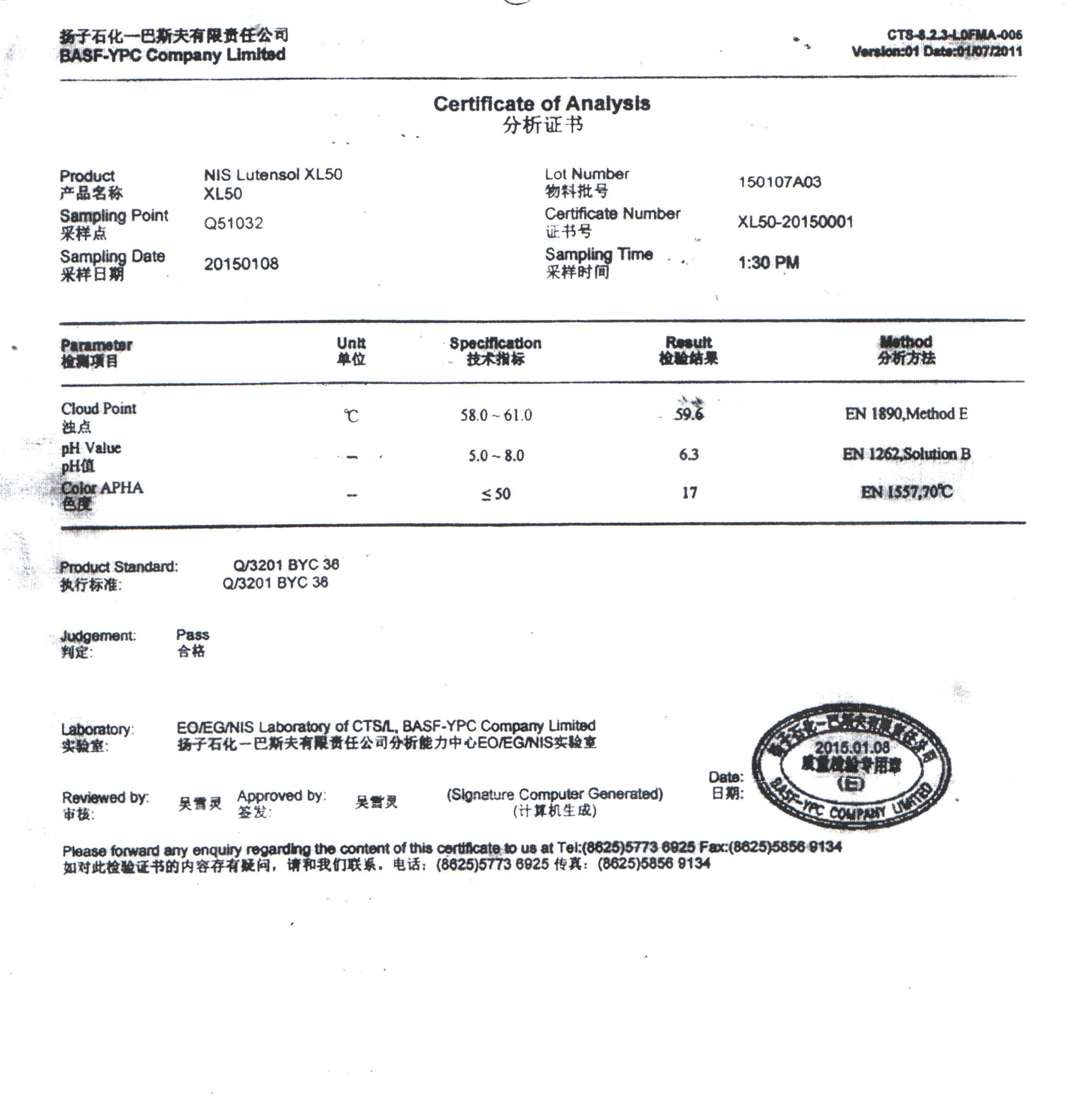 商品名称:非离子表面活性剂XL-50    包装:每桶190公斤