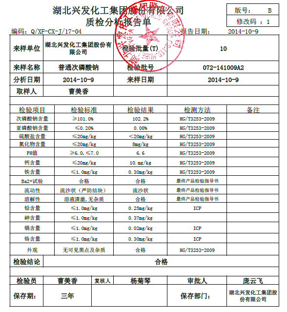 附次亚磷酸钠COA: